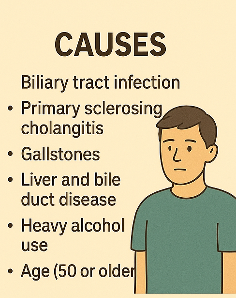 담도암의 정확한 원인은 아직 명확하게 밝혀지지 않았지만, 다음과 같은 위험요인이 알려져 있습니다: