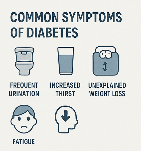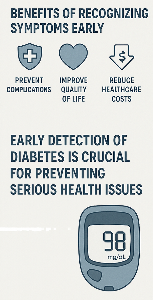 당뇨병은 **'조용한 질병'**이라고 불릴 만큼 초기 증상이 매우 미미하거나 아예 없는 경우도 있습니다. 따라서 정기적인 건강검진과 혈당 측정을 통해 조기 발견이 필수적입니다.
