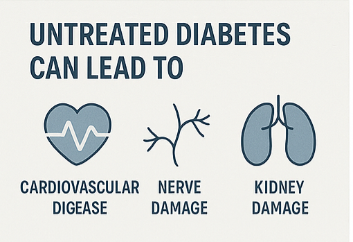 조기 진단 없이 방치된 당뇨병은 망막병증, 신장병, 신경 손상, 심혈관 질환, 족부 괴사와 같은 다양한 합병증을 유발할 수 있습니다. 이는 삶의 질을 심각하게 저하시키고 치료비 부담도 크게 증가시킵니다.
