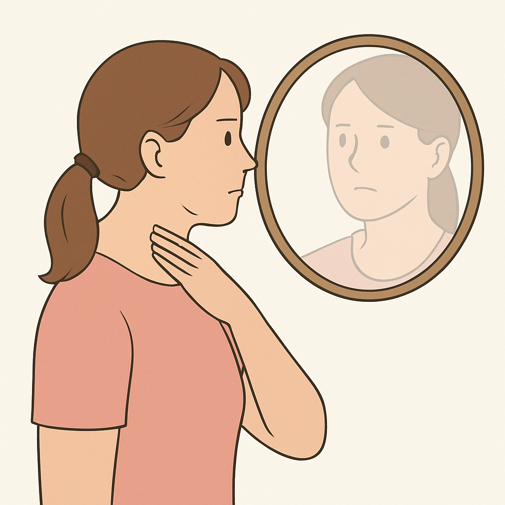 - 거울을 봤을 때 목이 짧고 어깨와 경계가 모호하다.
