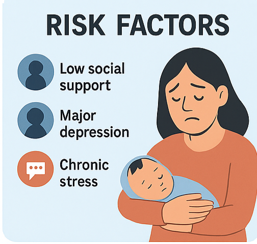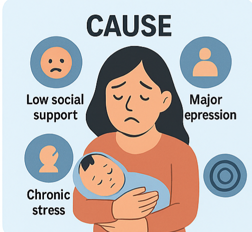 산후우울증은 하나의 원인으로 발생하기보다는 복합적인 요인들이 작용합니다.