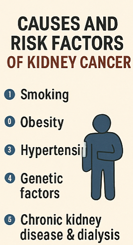 신장암은 명확한 원인이 밝혀지지는 않았지만, 다음과 같은 위험 요인과 관련이 깊습니다.