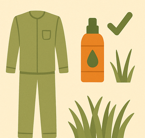모자·목수건: 진드기는 머리카락 안에도 숨어들 수 있으므로 보호 장비 착용이 유용합니다.