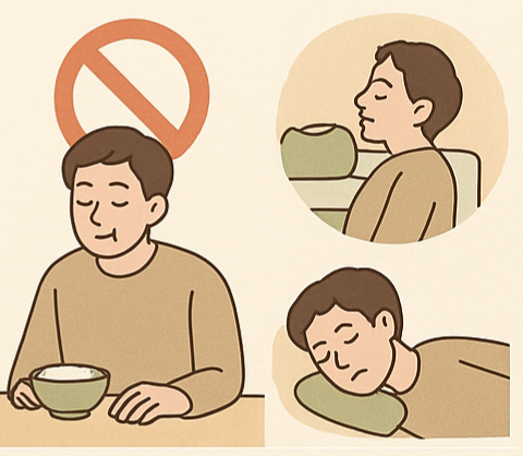식사 후 바로 누우면 위산이 식도로 역류해 속쓰림이나 더부룩함을 유발할 수 있습니다. 식후 30분~1시간은 가볍게 움직이며 소화를 도와주세요.