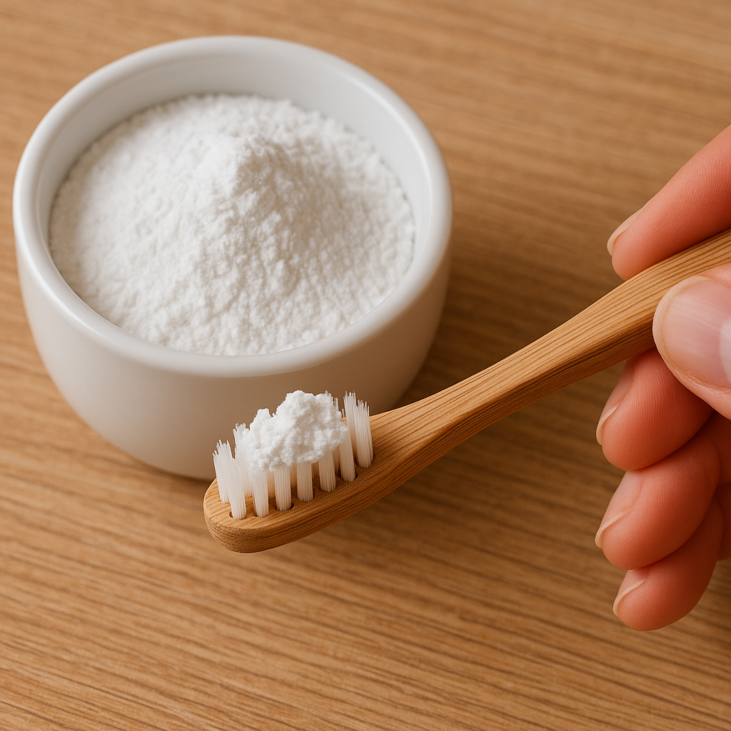 베이킹소다는 자연 유래 연마제로, 치아 표면의 얼룩을 제거하는 데 도움을 줄 수 있습니다. 다음과 같은 방법으로 사용할 수 있습니다: